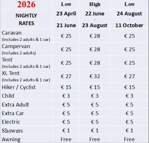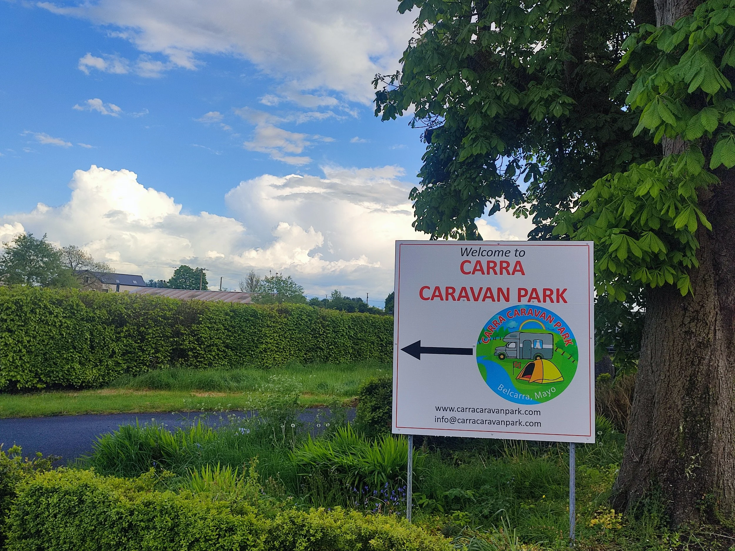 We are a Fáilte Ireland approved park located in a small village, Belcarra, 200 metres from a convenience store, an Irish pub, a craft butcher, a church and a garage.